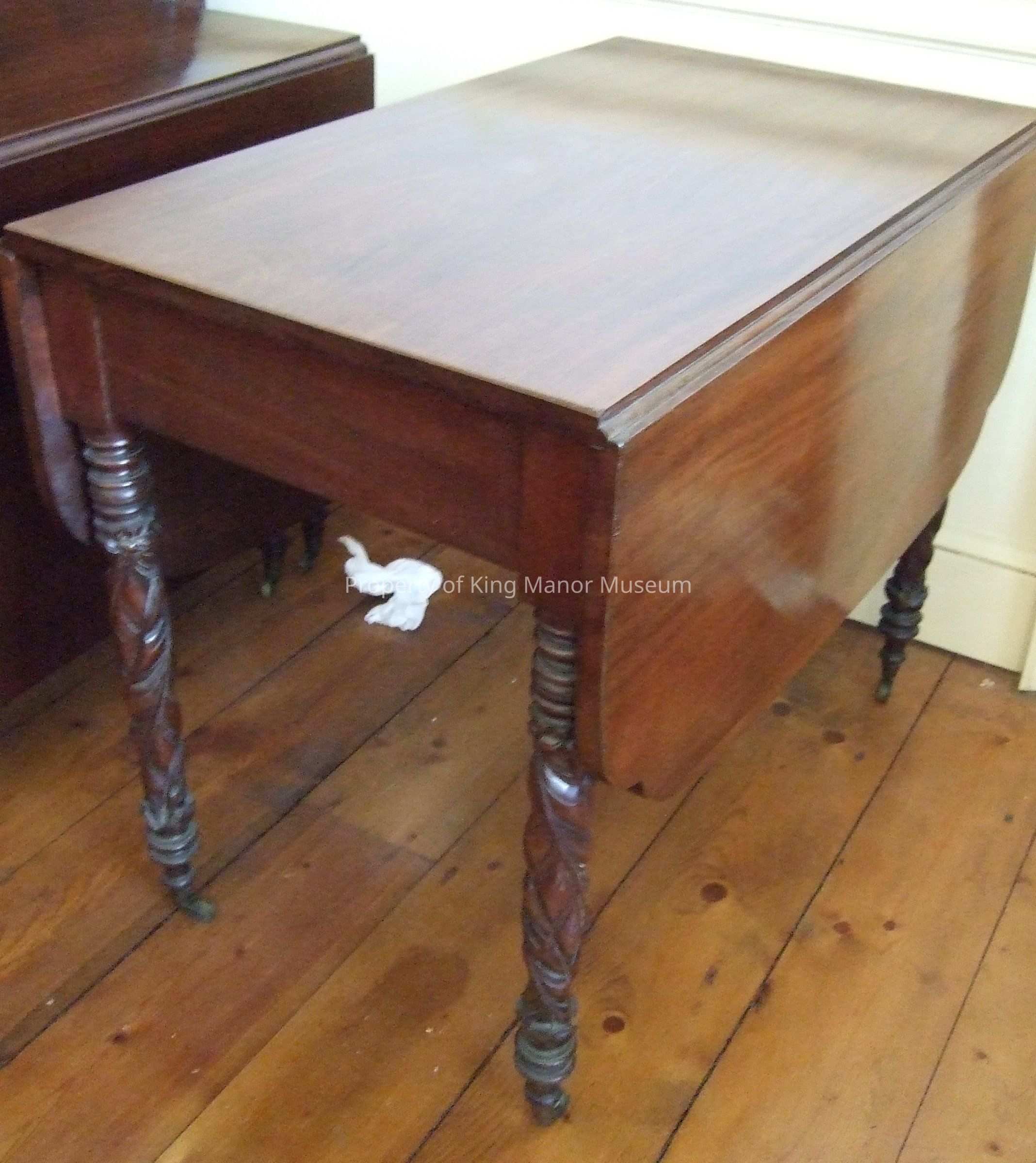 Cloverleaf drop-leaf table having swing-arm support and carved foliate twisted legs fitted with casters