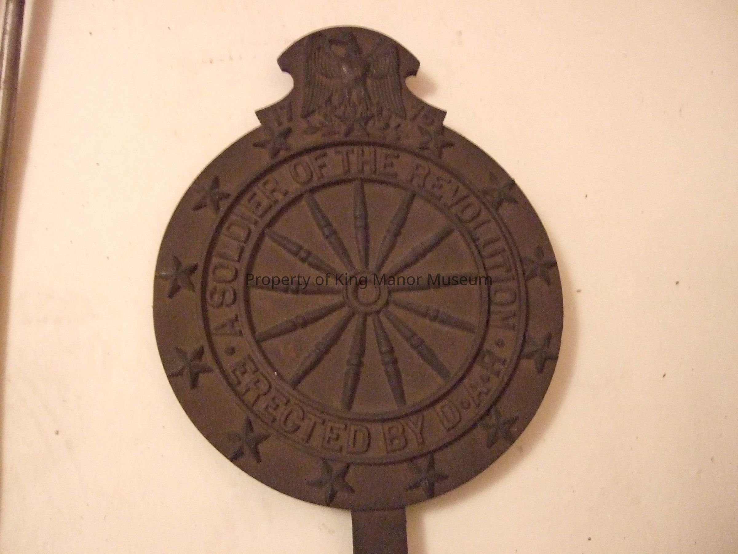 Cast iron plaque honoring a war hero; DAR, probably 20th century