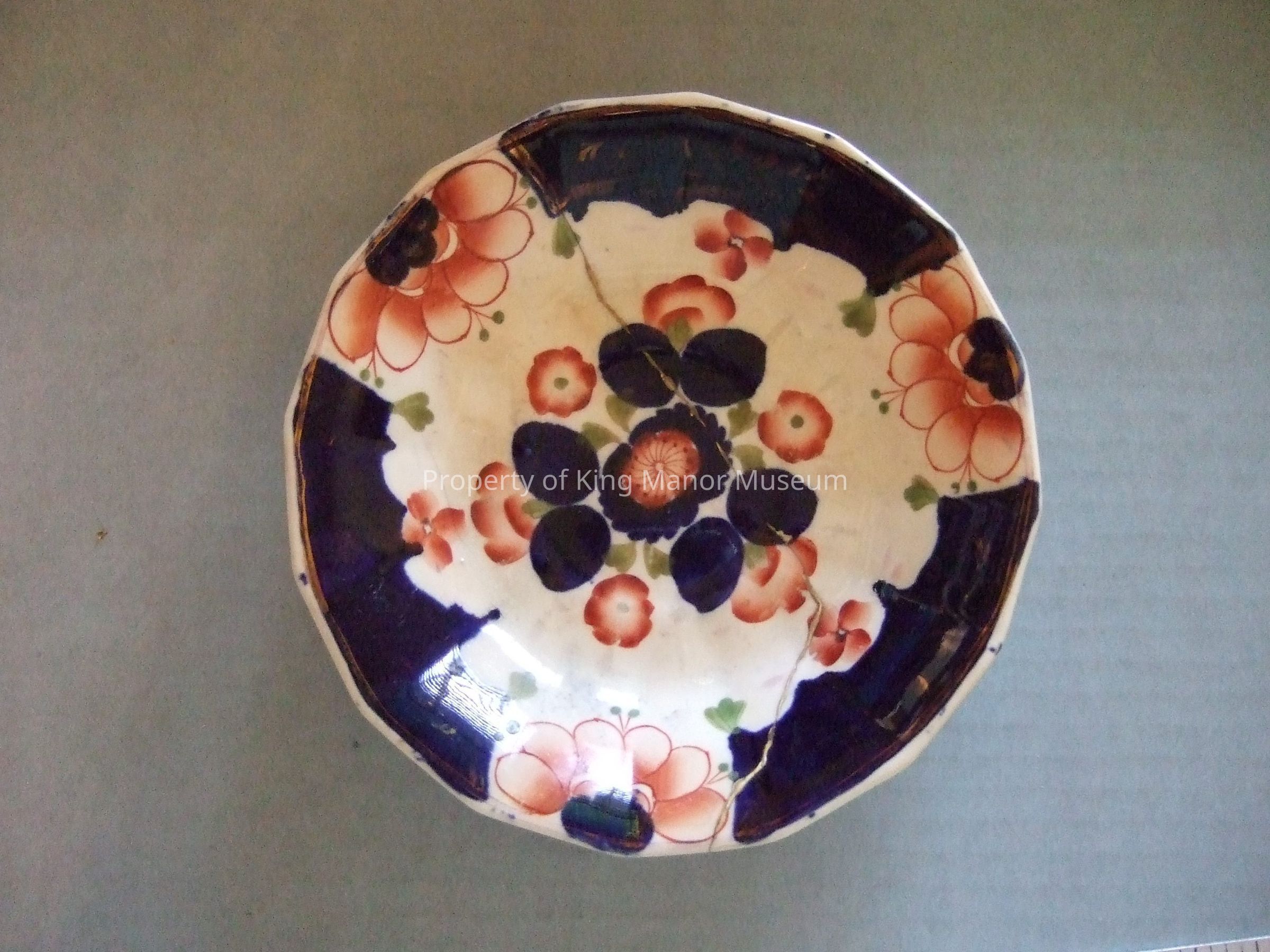 Porcelain bowl having slight lustre finish the rim decorated with handpainted indigo blue reserves alternating with pink flowersCollection