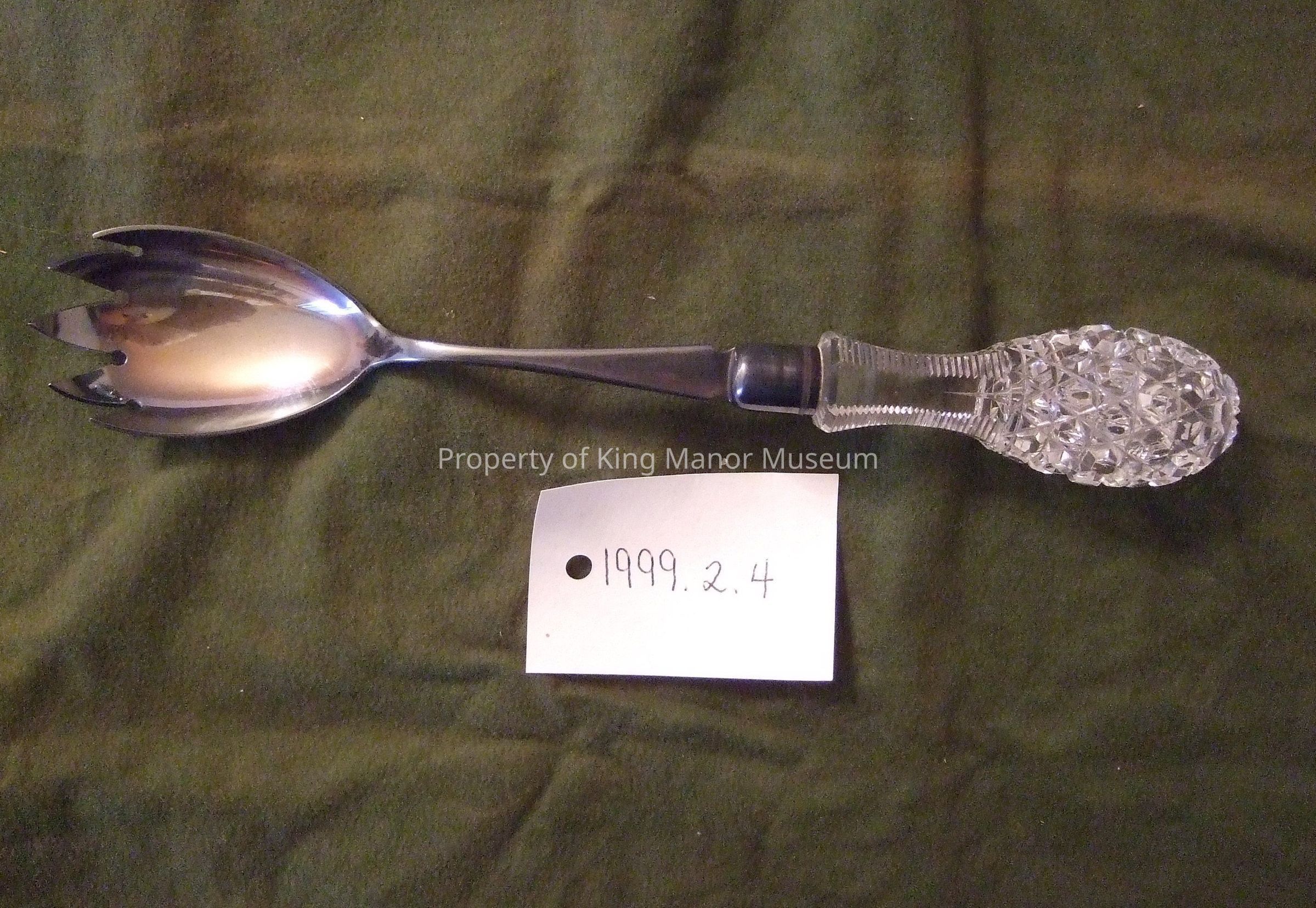Silver plated serving fork having chrystal diamond cut pattern ovoid-shaped grip