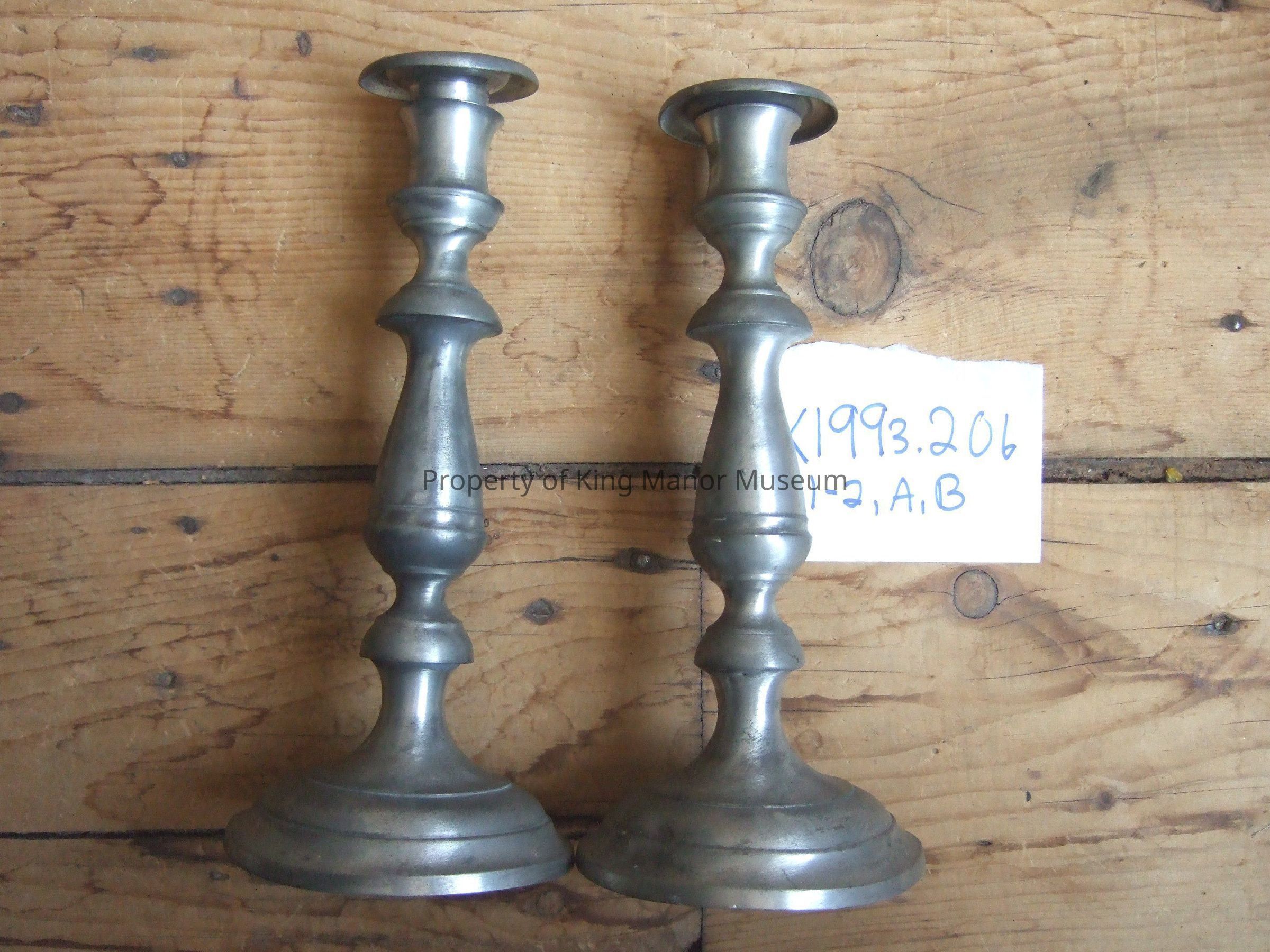 Pewter candlestick, one of two of same having baluster shape