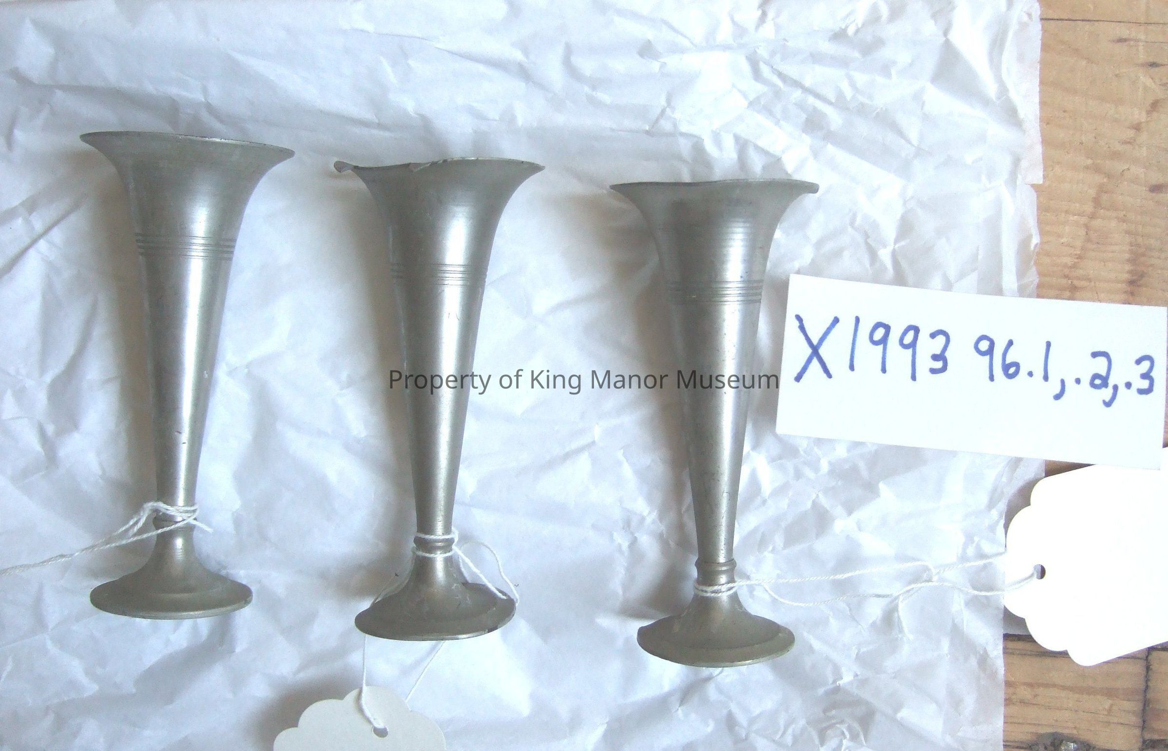 Pewter footed bud vase, one of three of same, of trumpet shape