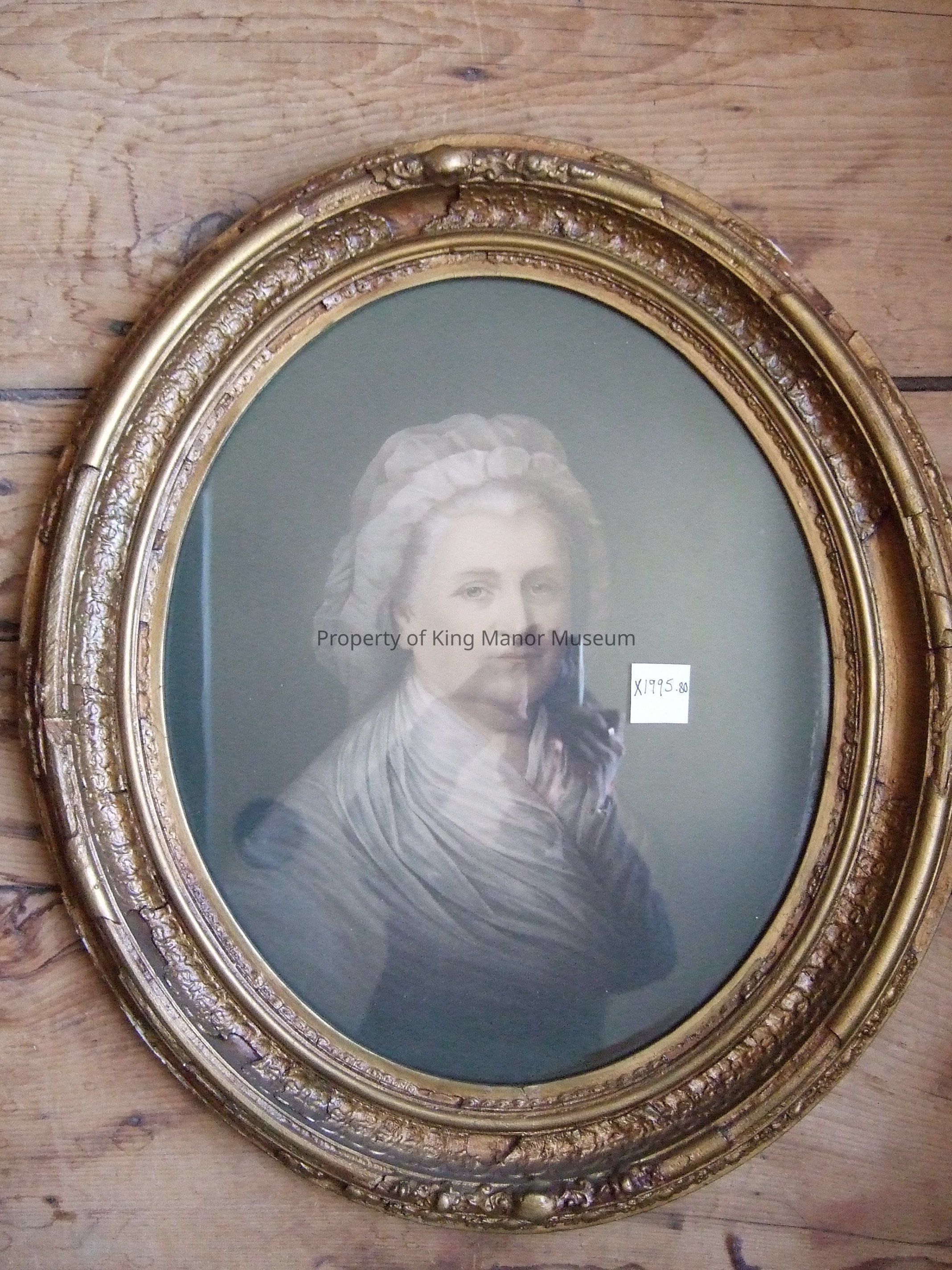 Hand tinted print of portrait of Martha Washington; a reproductrion of Currier and Ives depiction; housed under glass in gilt gesso oval-shaped frameCollection
