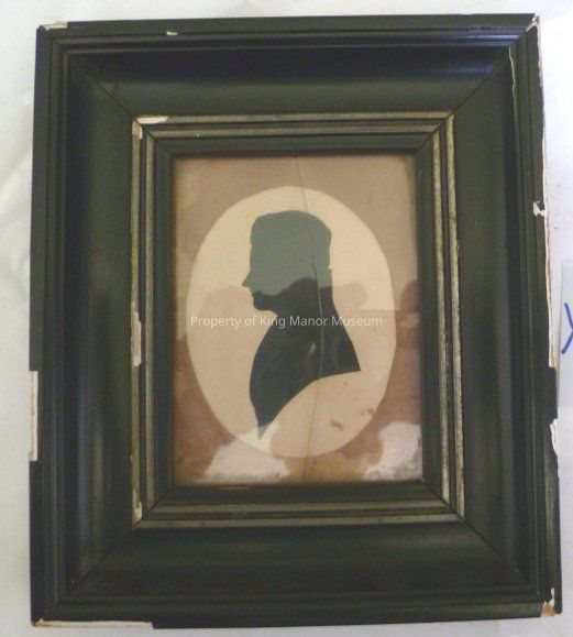 Paper silhouette of a man facing to his right, the silhouette framed in a varnished wood frame having mitered corners and gilt ruled accent at inner edgeCollection