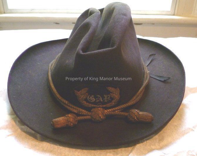 Felt hat having creased crown fitted with gold rope at base bearing the silver emblem GAR and having a wide round brimCollection