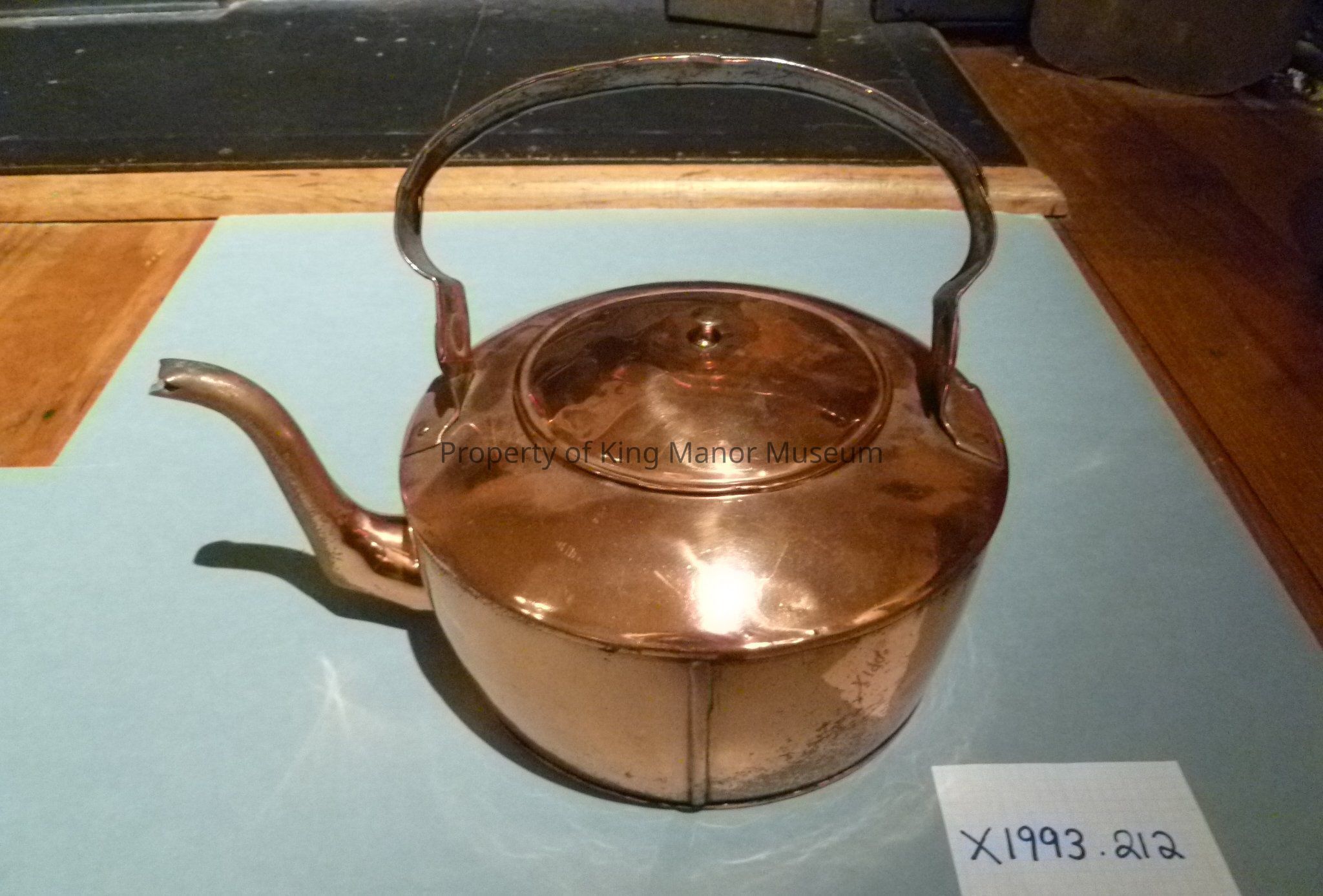 Copper water kettle having strap handle, goose neck having bifurcated endCollection