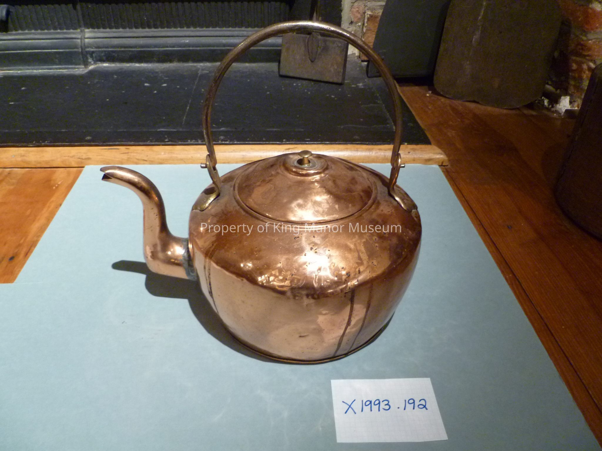 Copper water kettle having seamless body, goose neck and wrought metal bail handleCollection