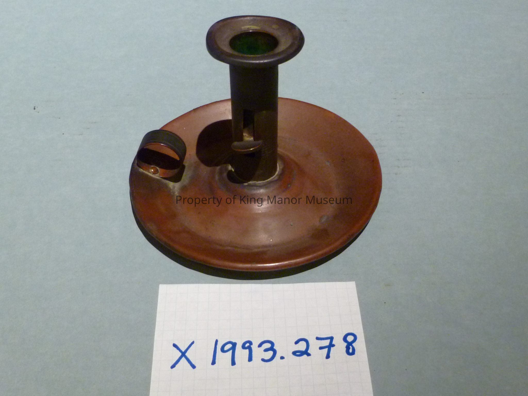 Painted metal candlestick having dished base and fitted with candle lifterCollection