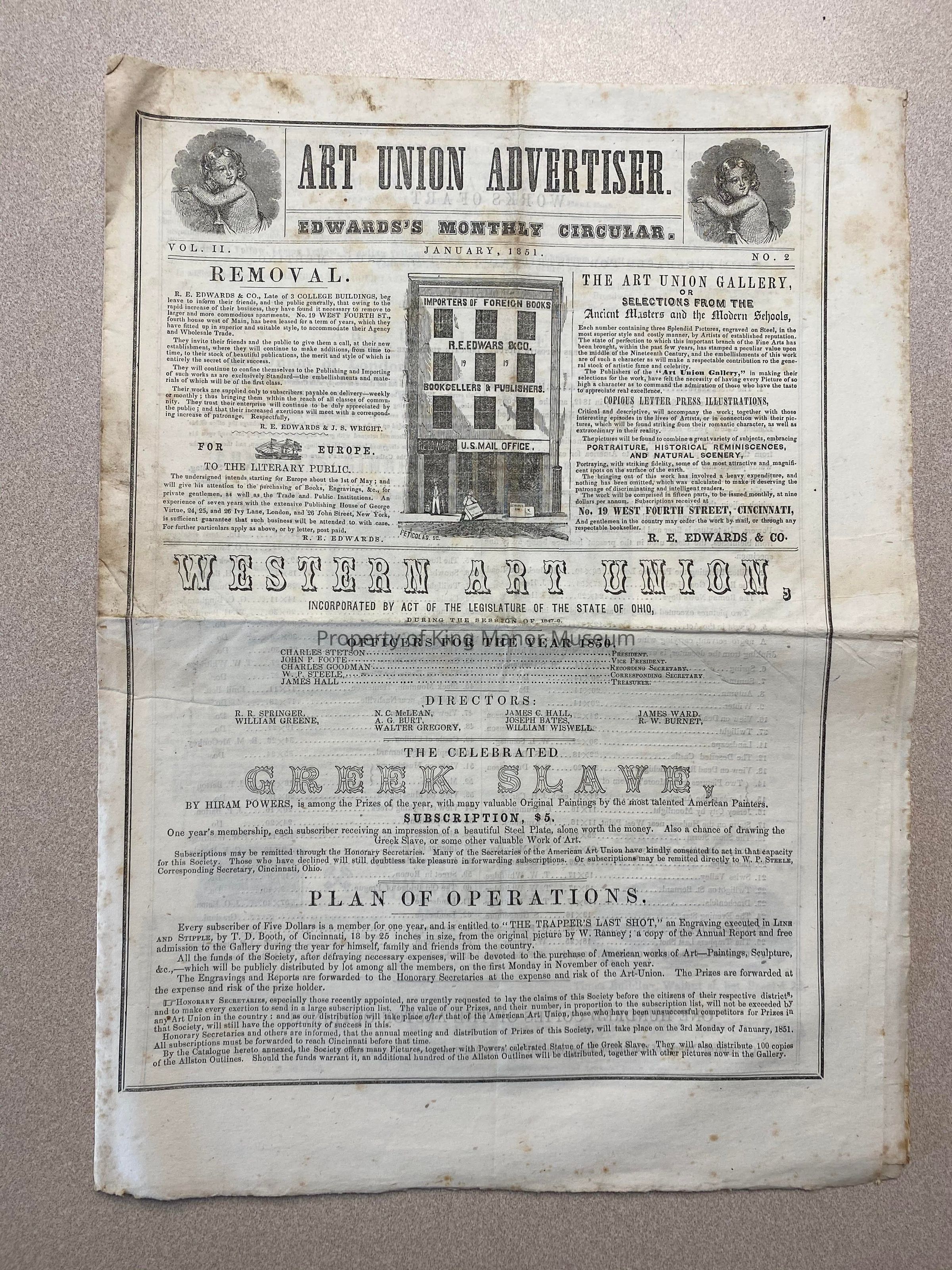 Art Union Adertiser periodical from 1851.