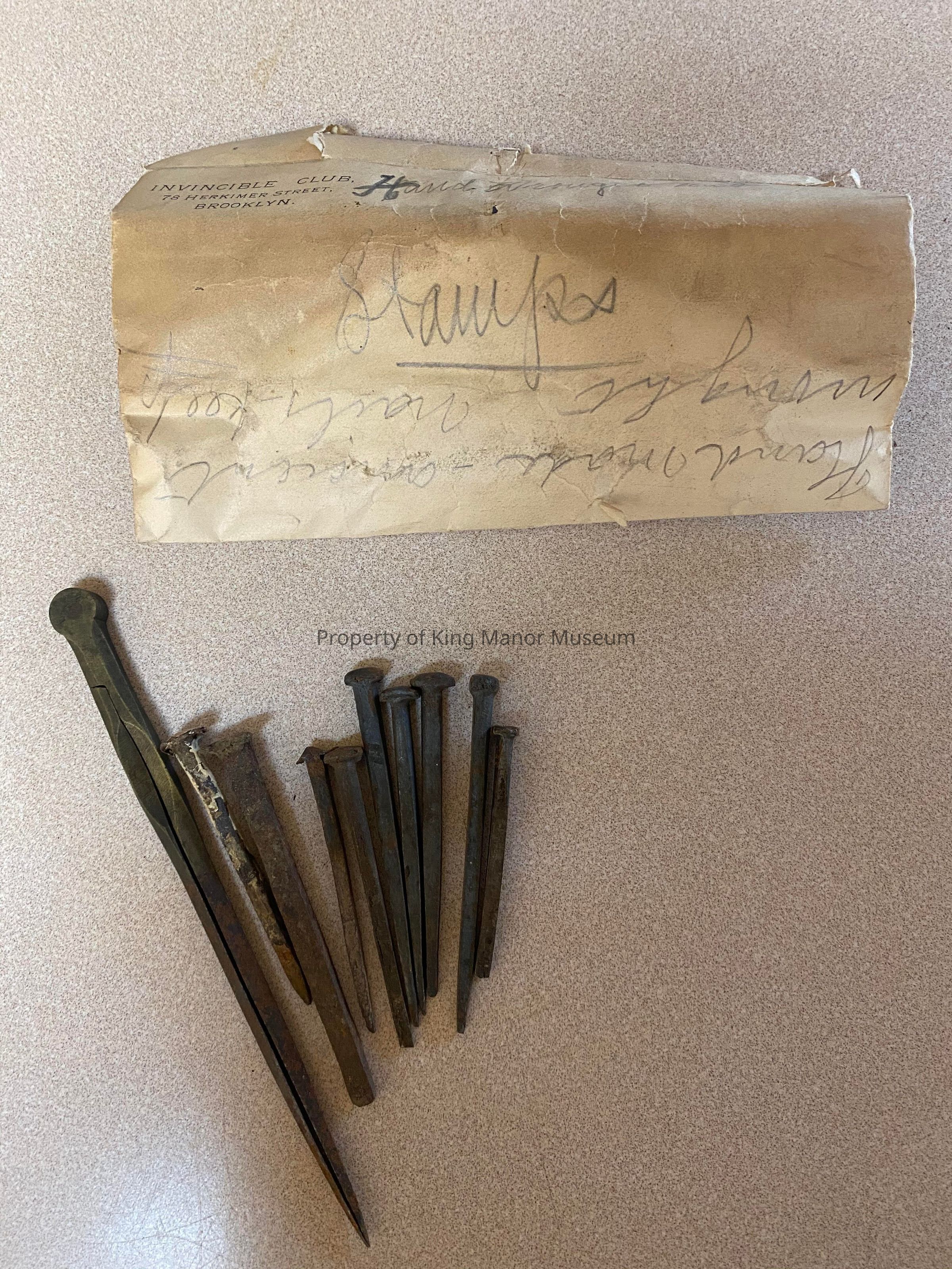 handwriting says "hand wrought nails, stamps/ handmade-ancient....keep