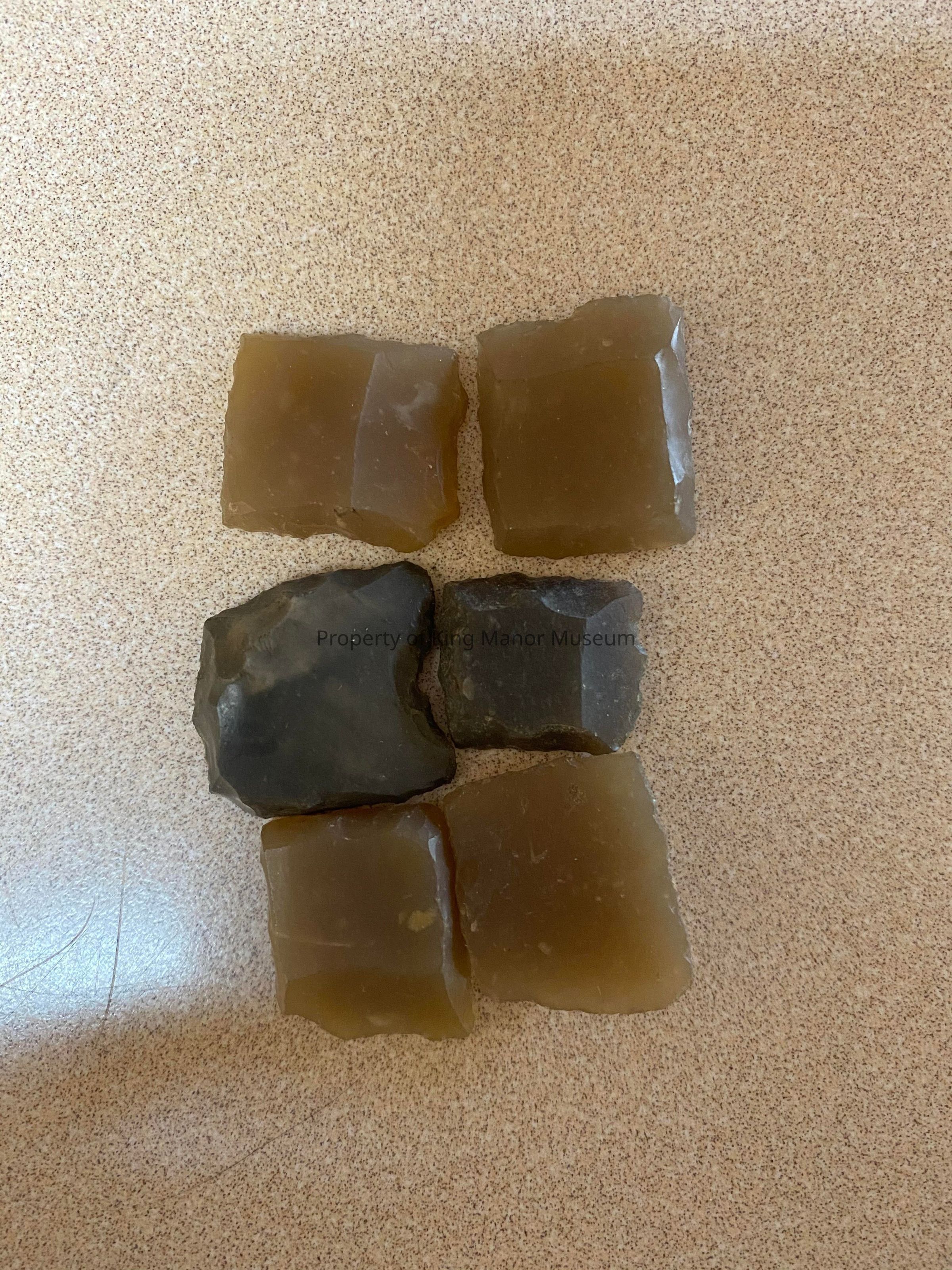 6 square stone fragments, two black, four beige? *found in museum basement chest drawer