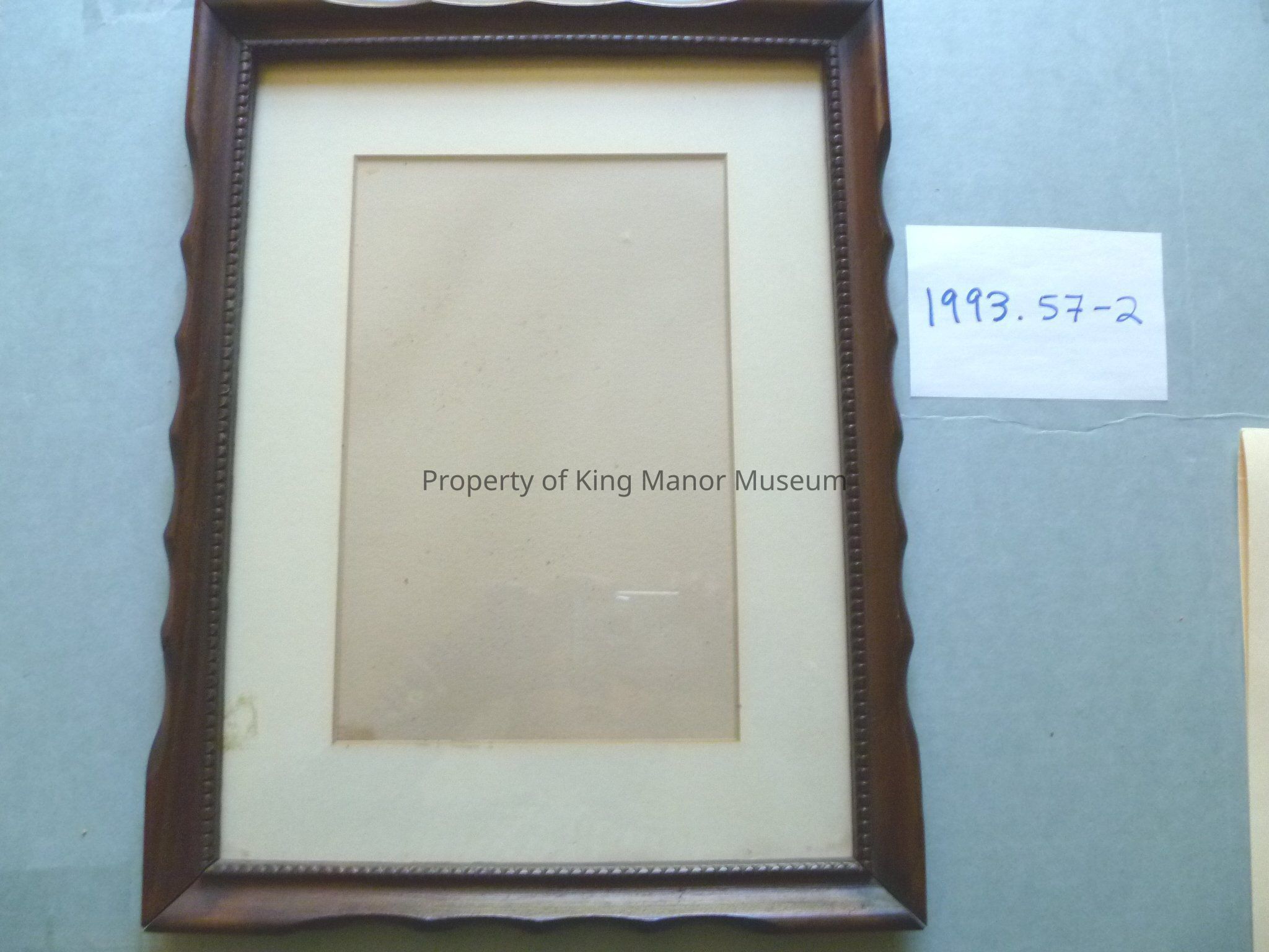 Removed from wood frame Dec. 1997. Frame (x1993.57-2) has glass, red-brown varnish, scalloped edges, gadrooning along edge. Frame matches (x1993.58-2) for image of Rufus King. Frame is located in Box 75.Collection