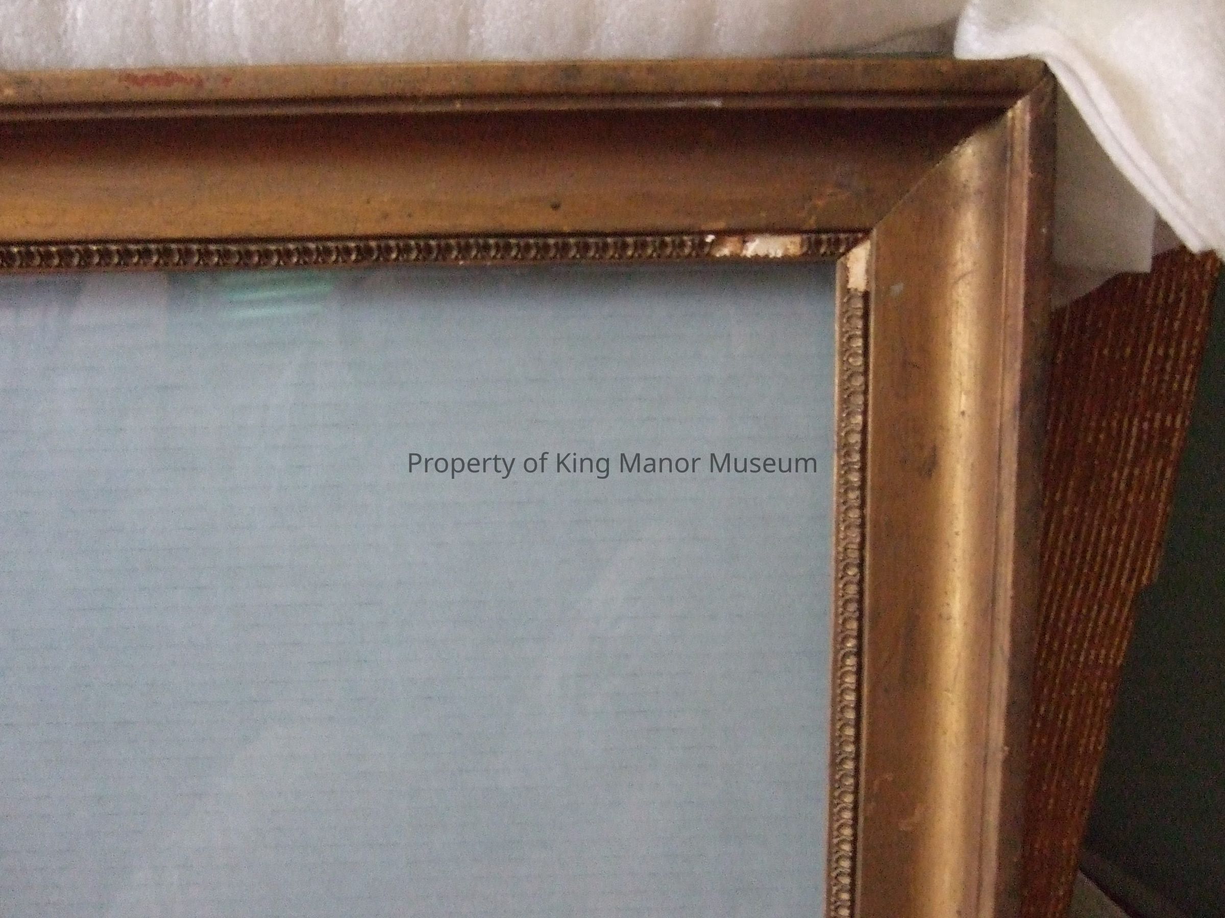 Gold painted wood picture frame having cavetto molding and classical decoration at inner edge