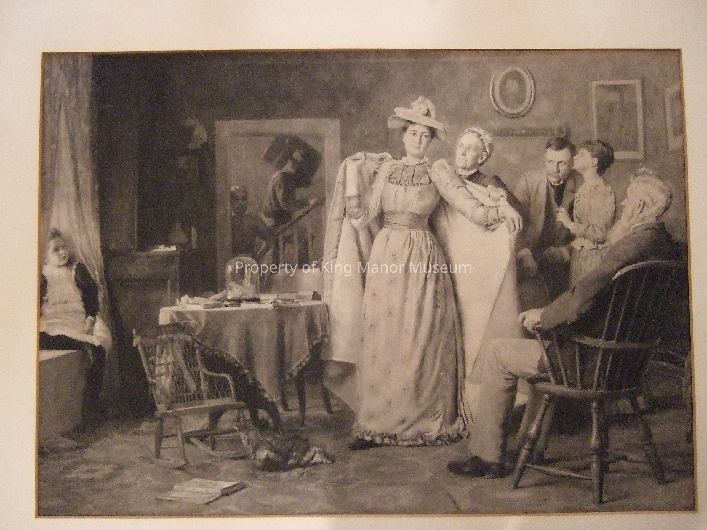 Print entitled, "Bringing Home the Bride" once housed in oak picture frame having simple molding (x1997.35-2