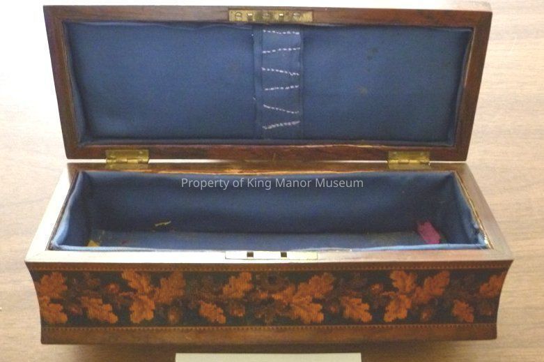 KB edits: Tunbirdge ware, Kent, England, c. 1850. Most likely a glove box. Blue satin lining is of more recent date.Collection