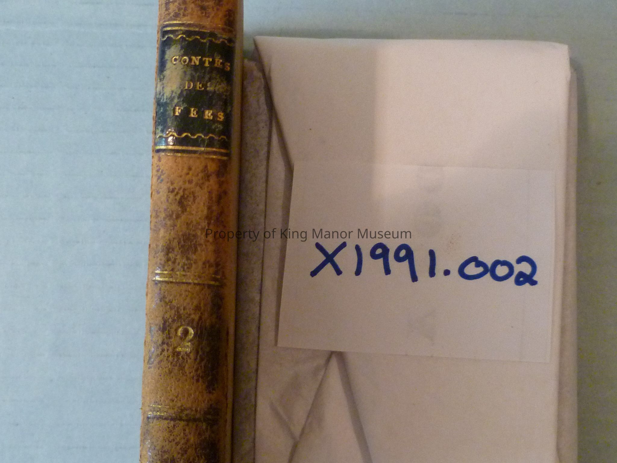 Small book in French. All sorts of writing in front and back of book. The names "Angeline" and "Alice King" are legible. On the first page of the story there is an inscription that says "Emily King from Les(?)-Eliza."