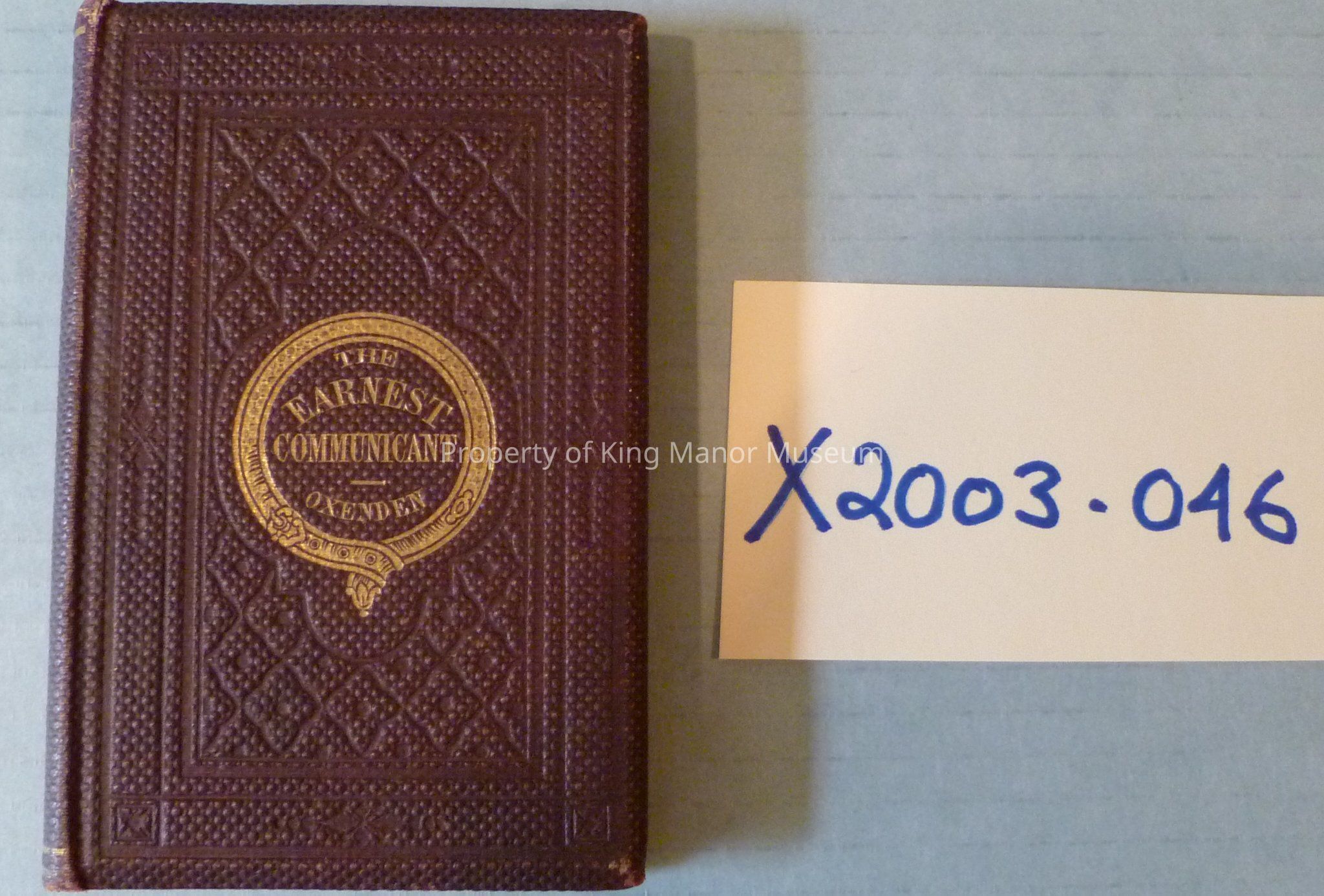 Small, brown leather bound book with gold embossing on the cover. Inscription inside says "Mary King Jamaica." Has a ribbon bookmark and the page edges are red.Collection