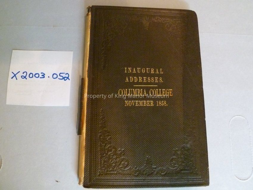 Dwight, Theodore. "Inaugural Addresses Columbia College November 1858."
