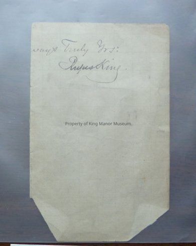 Letter fragment with Rufus King's signature. Above signature are the remaining words from a letter: "...ways truly Yrs (yours): Rufus King"Collection