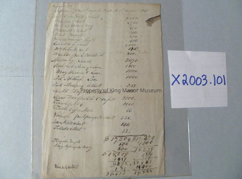 Receipt for expenses paid from August 1st 1840 to August 1st, 1841.Collection