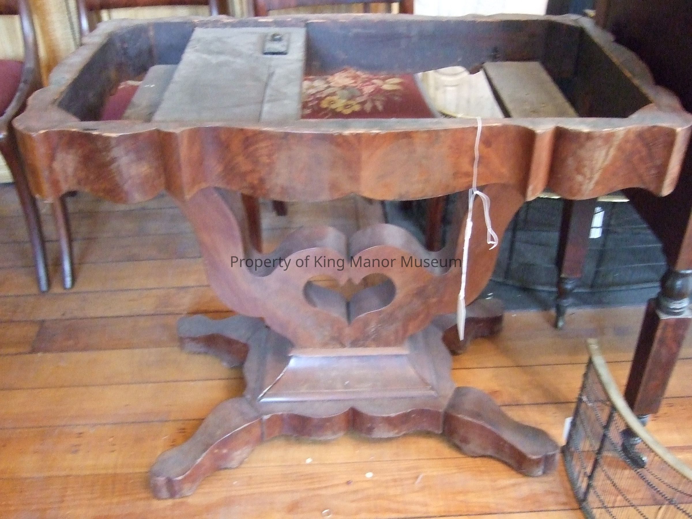 Pillar and scroll style card table with fold over top resting on four feet and heart shaped base. Carved and veneered.Collection