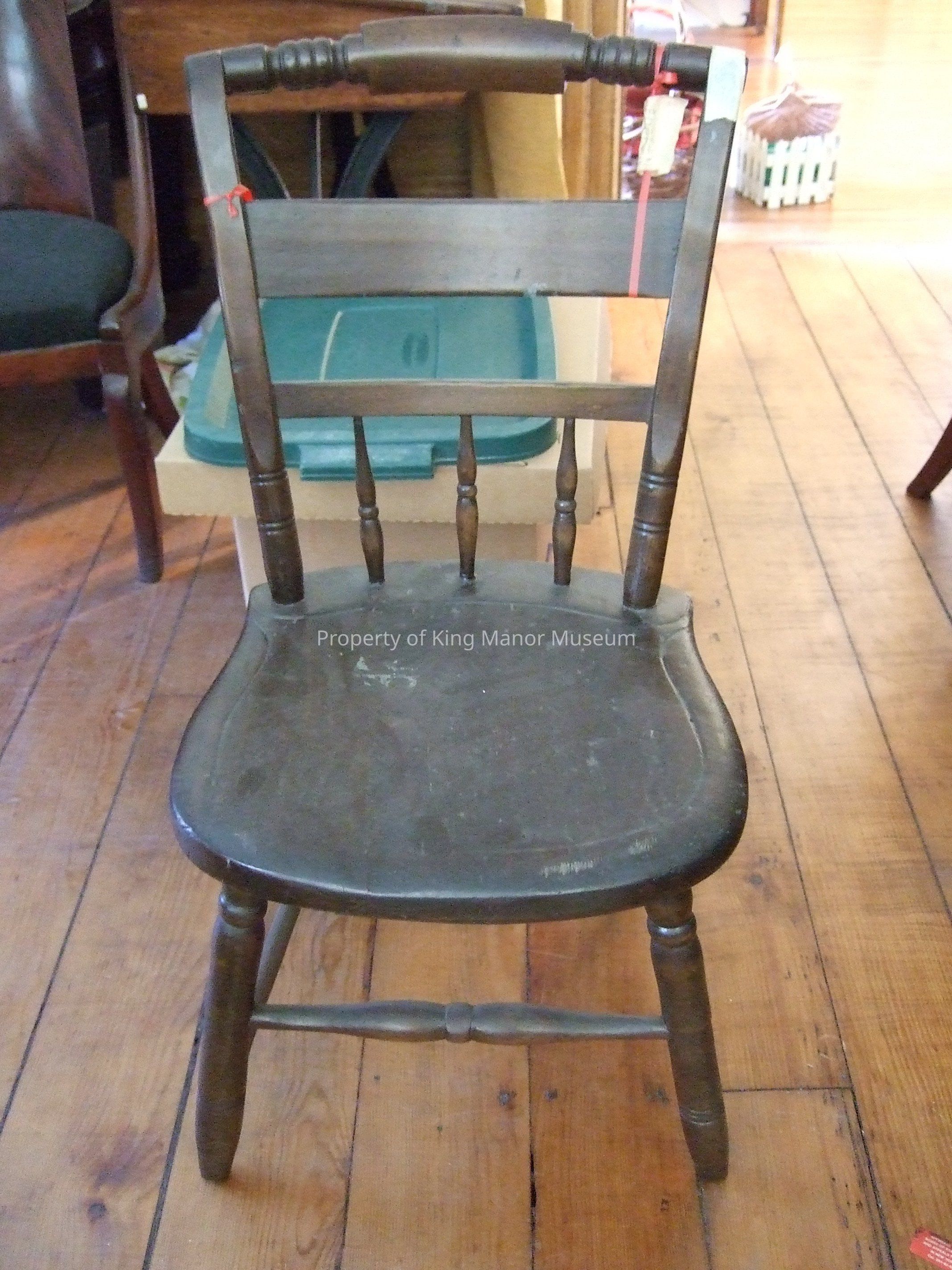 Wood side chair, one of a set of 3, turned crestrail and spindles.
