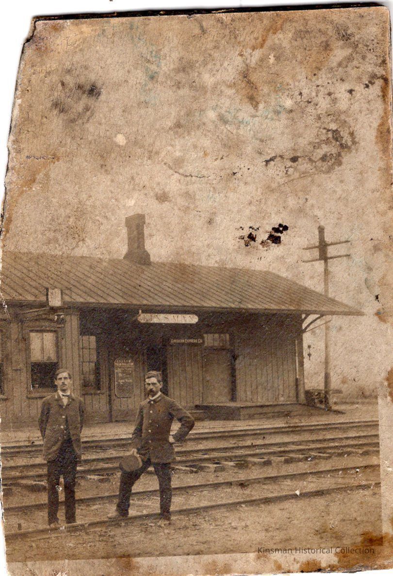 Earl and Walter Parsons in front of Kinsman Depot in Farmdale, Ohio.Collection