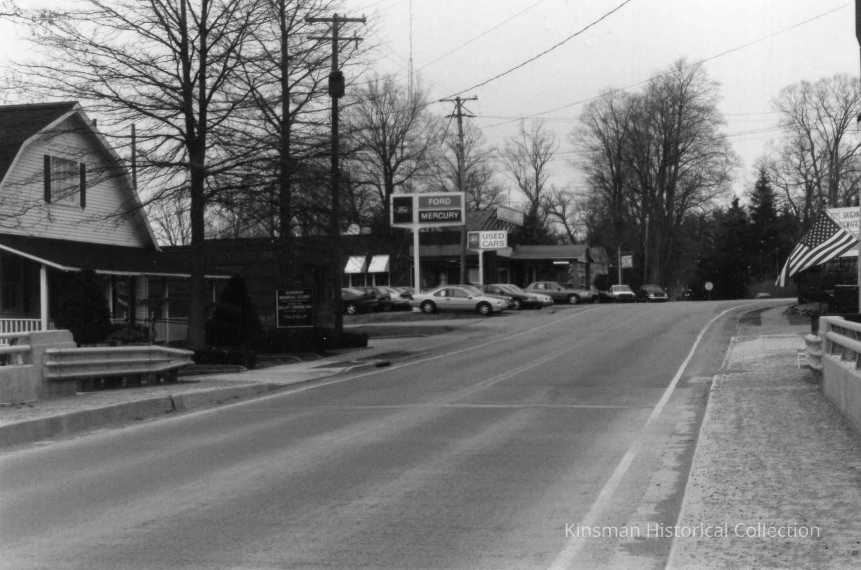 Road leading into Kinsman Square taken from the bridge over Pymatuning Creek showing Birrell Car Dealership and Kinsman Medical Clinic.Collection