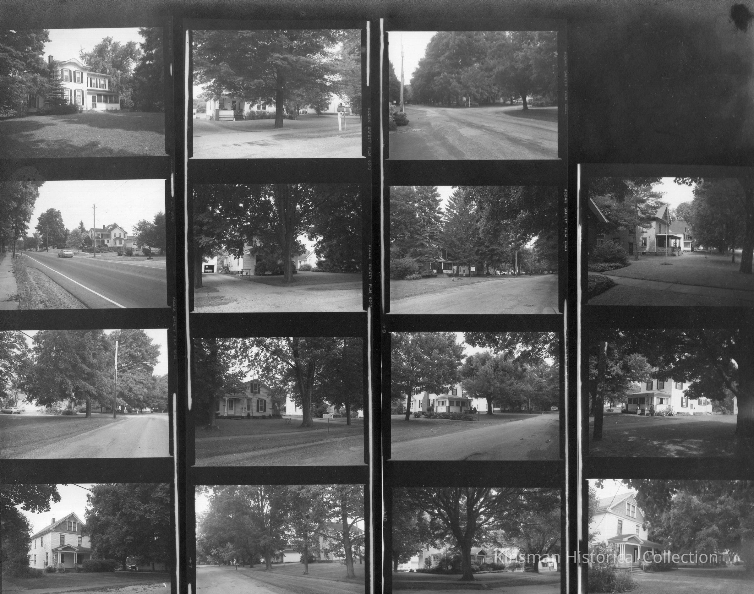 Sheet of 15 negatives of buildings around Kinsman, OH.Cataloged By