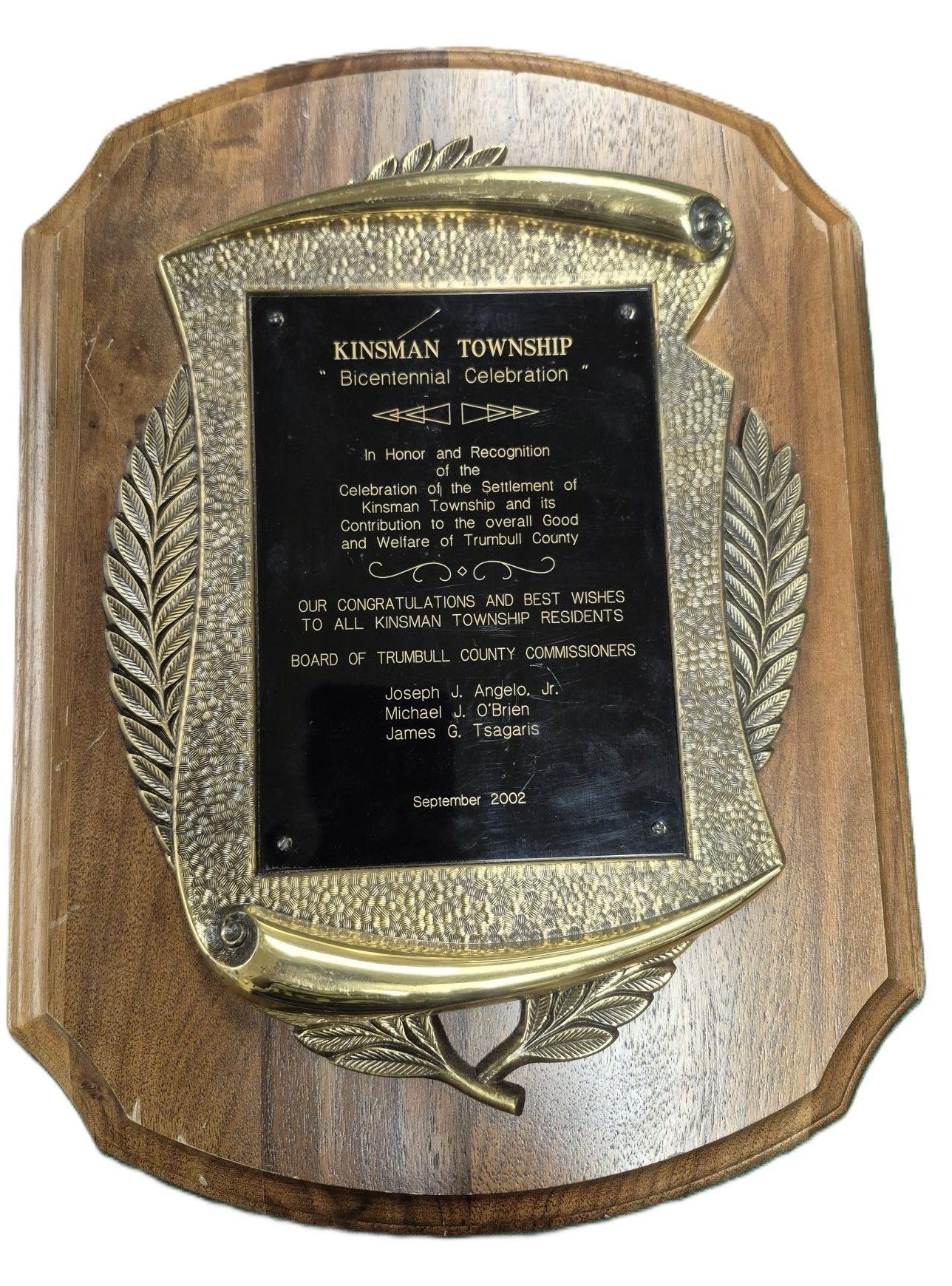 Kinsman Township Bicentennial Celebration in honor and recognition of this celebration of the settlement of Kinsman Township and its contribution to the overall good and welfare of Trumbull County. Our congratulations and best wishes to all Kinsman Township residents. Board of Trumbull County Commissioners Joseph J. Angelo, Jr., Micheal J. O'Brien, James G. Tsagaris September 2002.Cataloged By