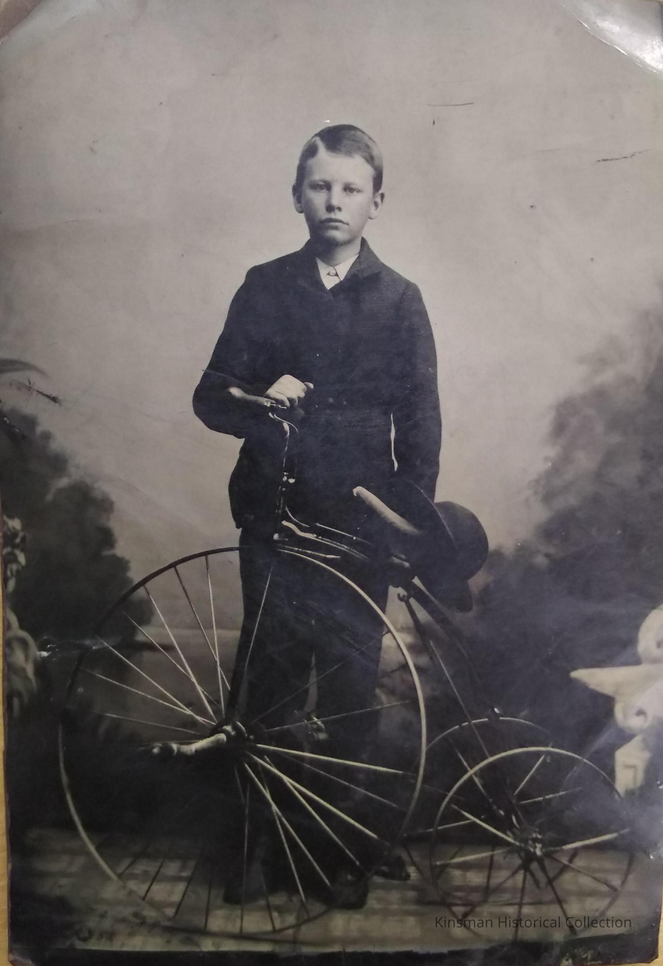 Tintype of a boy with a tricycle possibly Bill Hurlbert.Collection