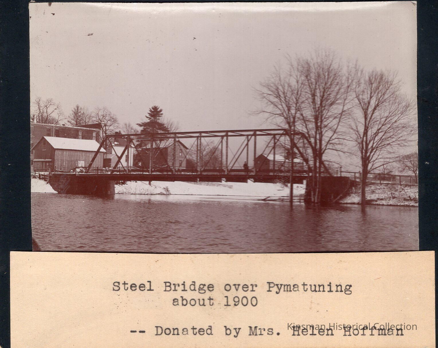 Man standing on Steel Bridge over Pymatuning circ 1900.Cataloged By
