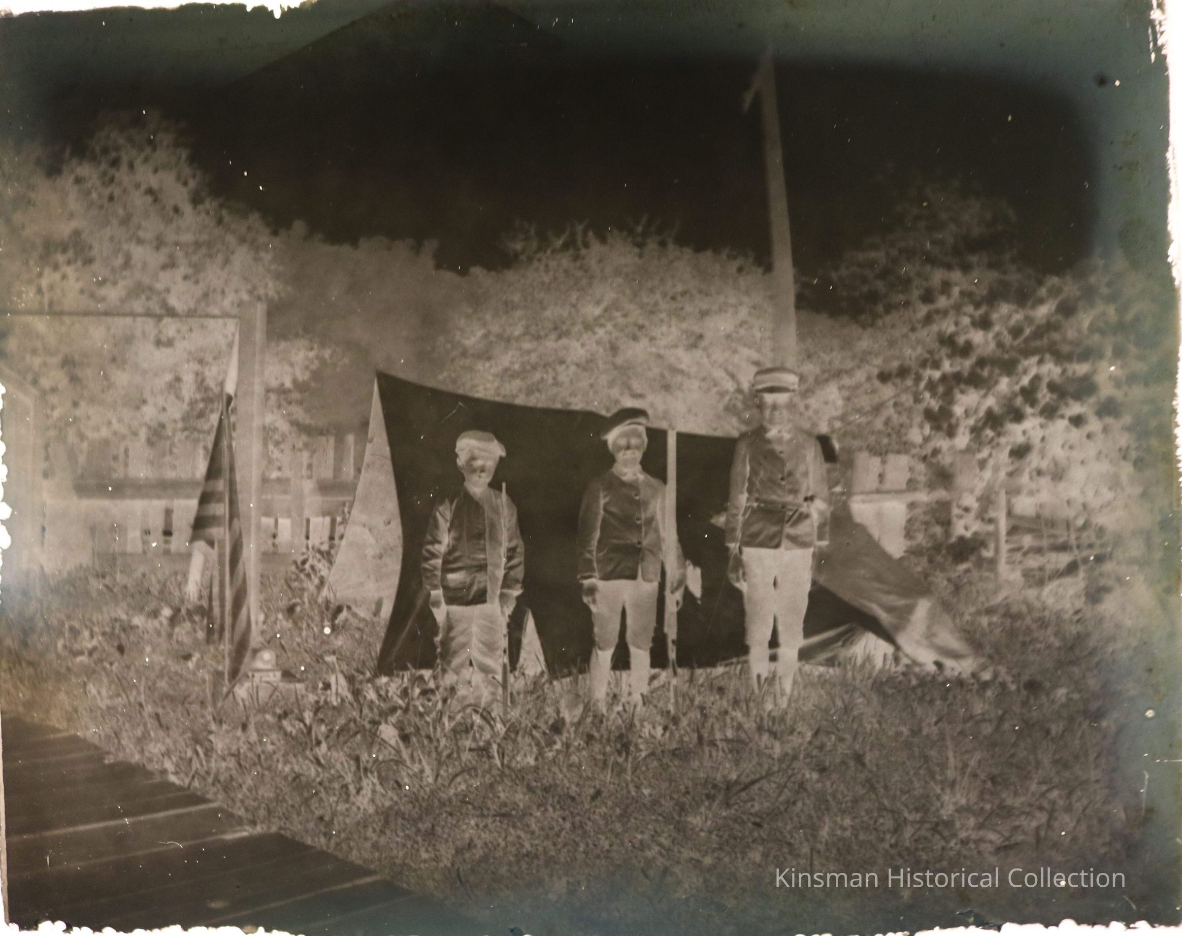 Group of people in uniform standing by a tent.Collection