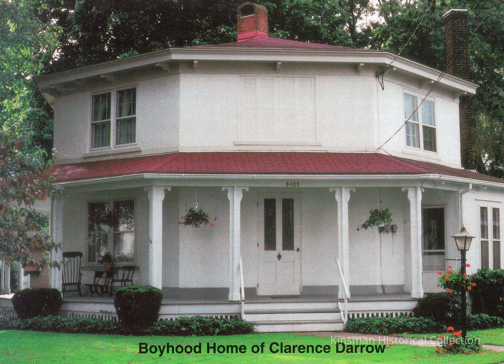Exterior of "Boyhood Home of Clarence Darrow". "Built in 1853- Eleanor Brown, Owner 8405 Main Street Kinsman, Ohio 44428".Cataloged By