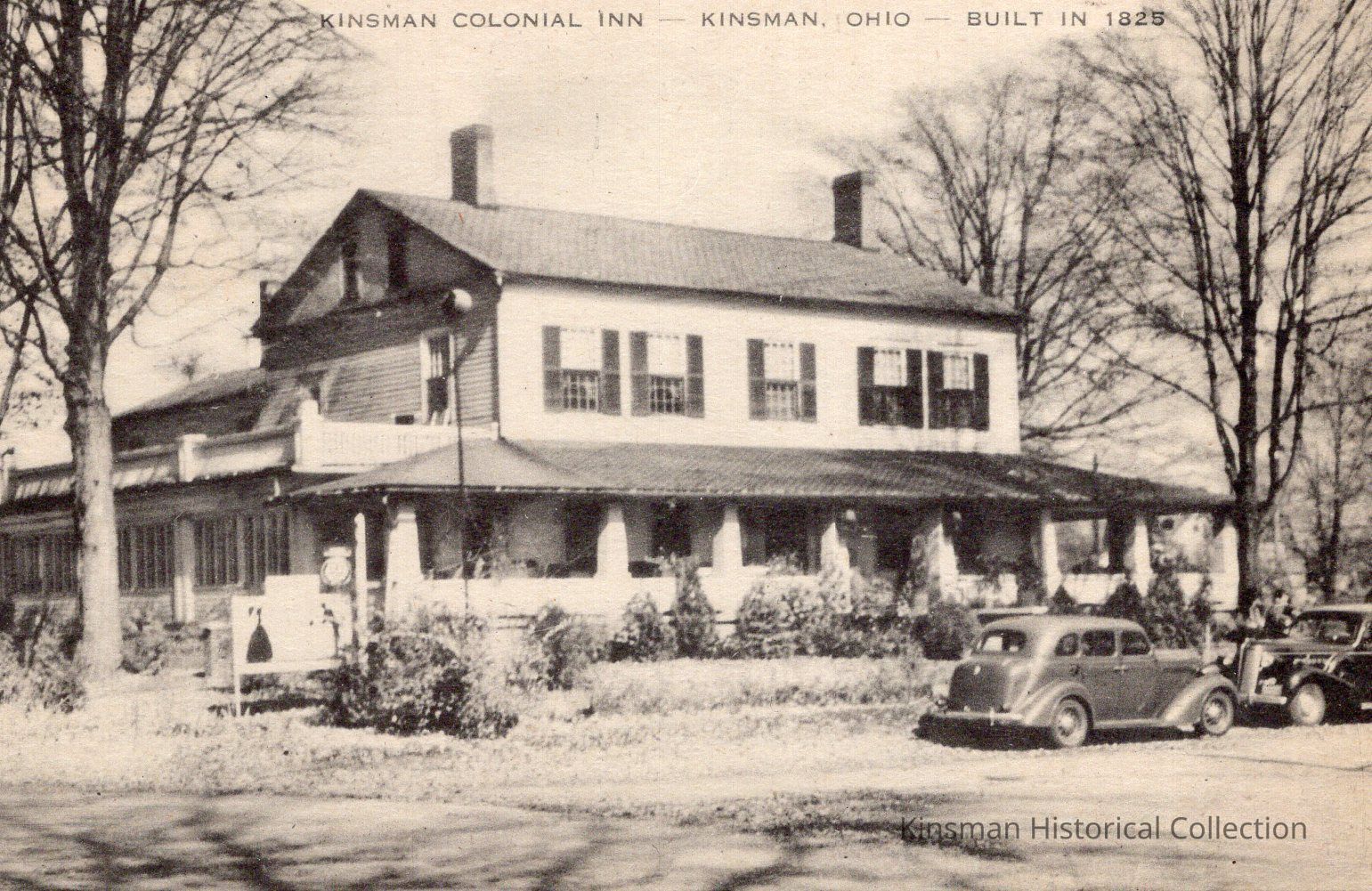 Kinsman Colonial Inn located in Kinsman, Ohio built in 1825. Writing on back "We stopped here several years ago for dinner on our way home from the east. They do serve lovely meals. We ate in the enclosed porch."