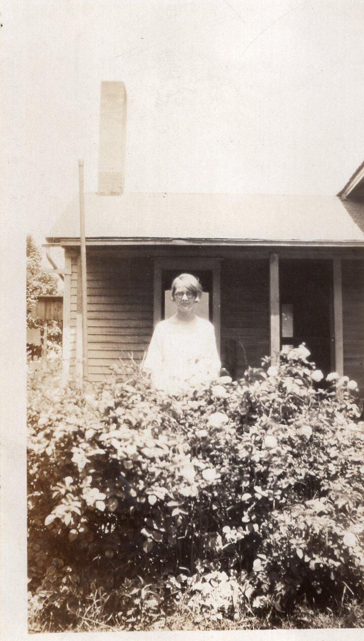 Woman standing behind a bush.Collection