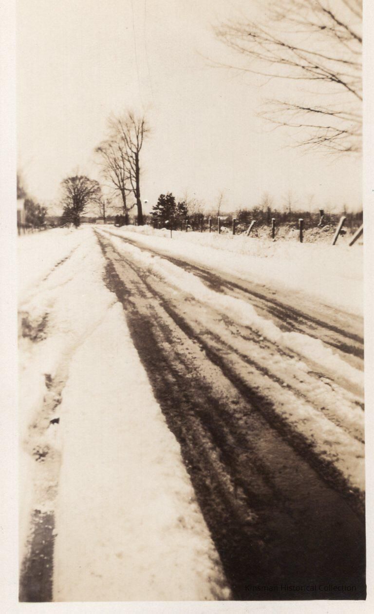 Snowy road with tire tracks.Collection