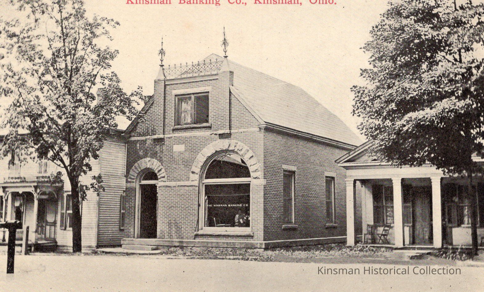 Kinsman Banking Company in Kinsman, Ohio circa 1900s. Located across from the Wallace Davis Store on Main Street.Cataloged By