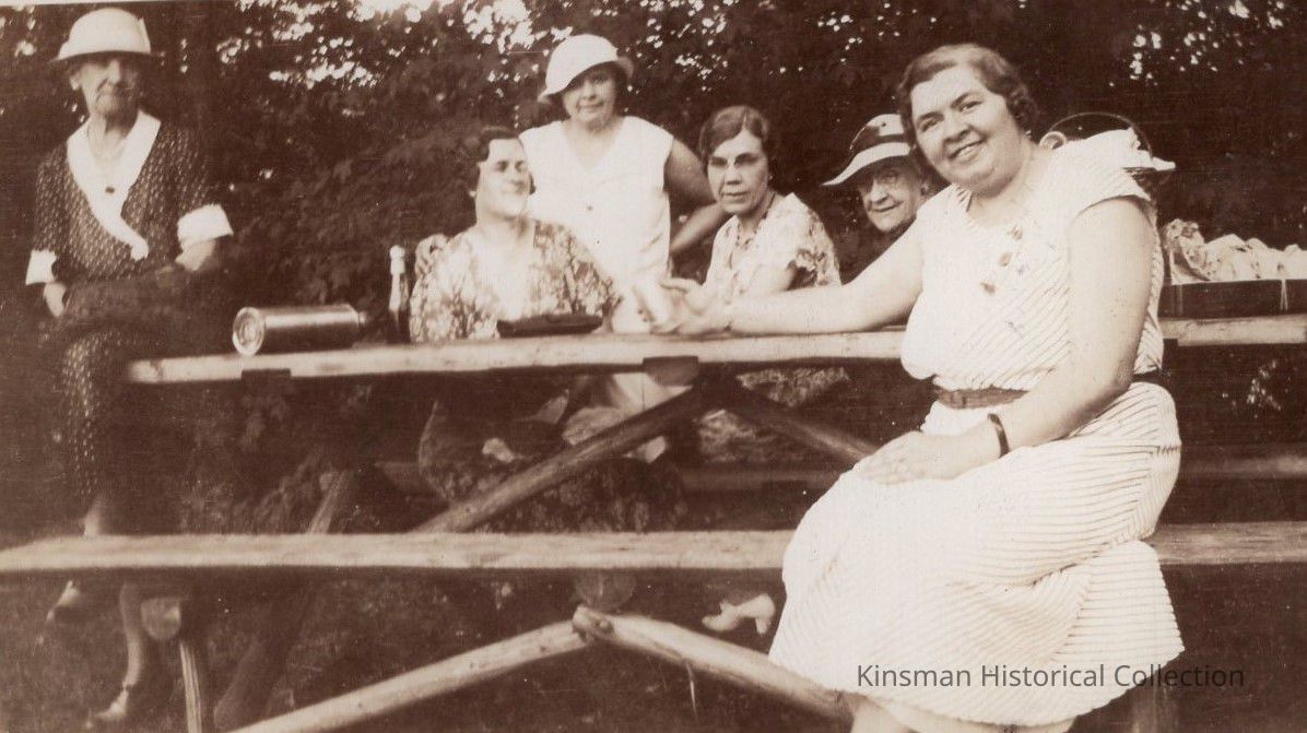 Group of ladies sitting at a picnic table.Collection