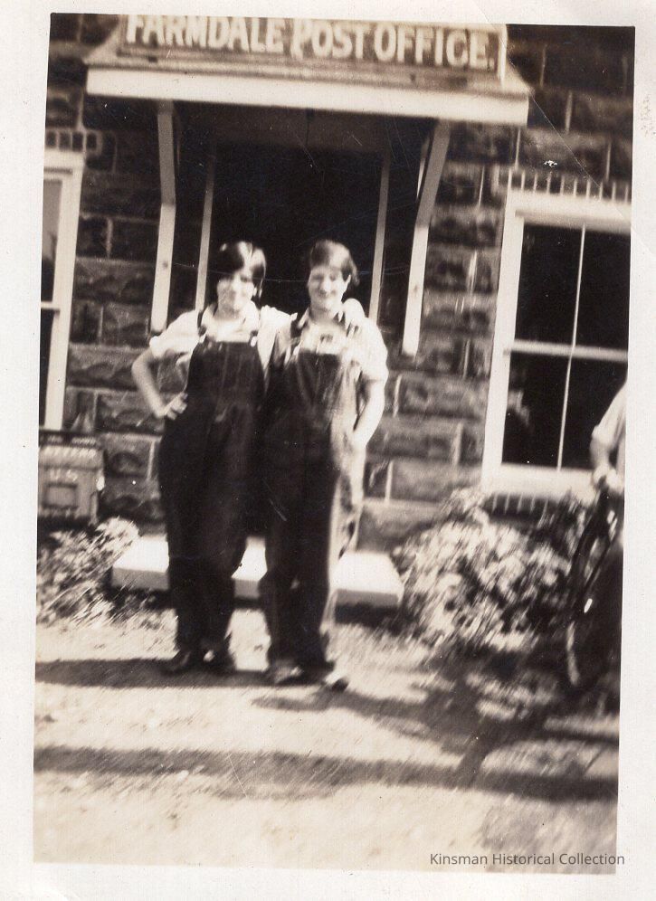 Two people standing in front of the Farmdale Post Office.Collection