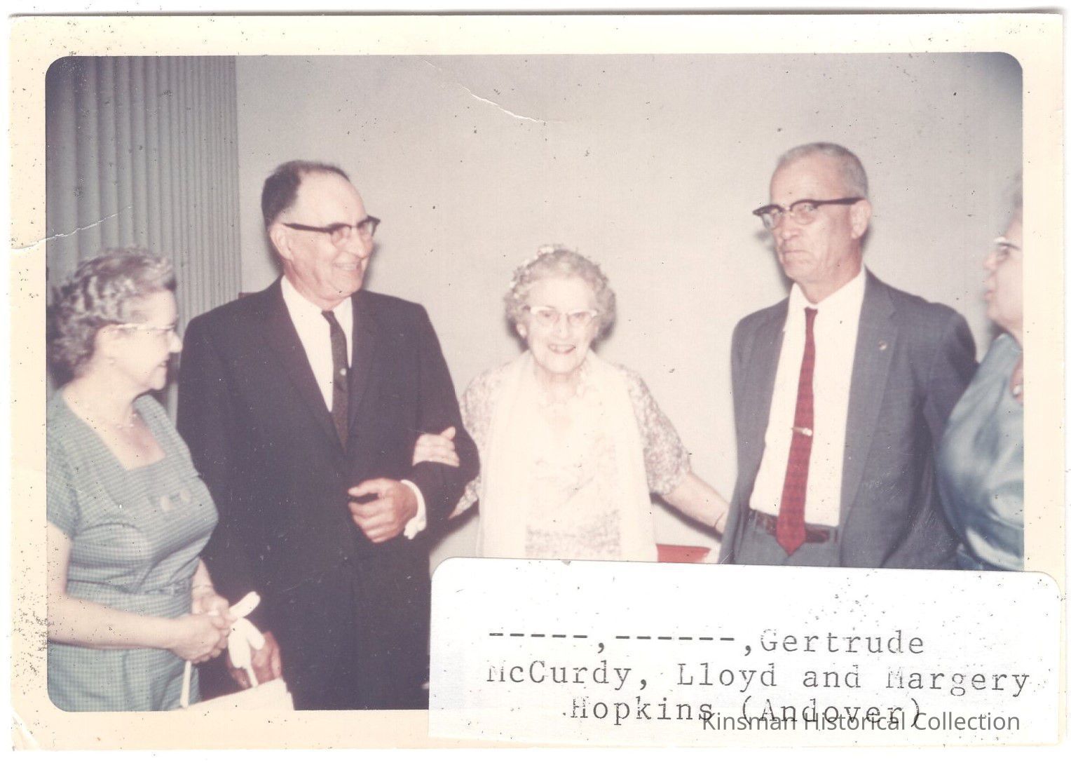 Small group identified as Gertrude McCurdy, Lloyd and Margery Hopkins from Andover, and one member unidentified.Cataloged By