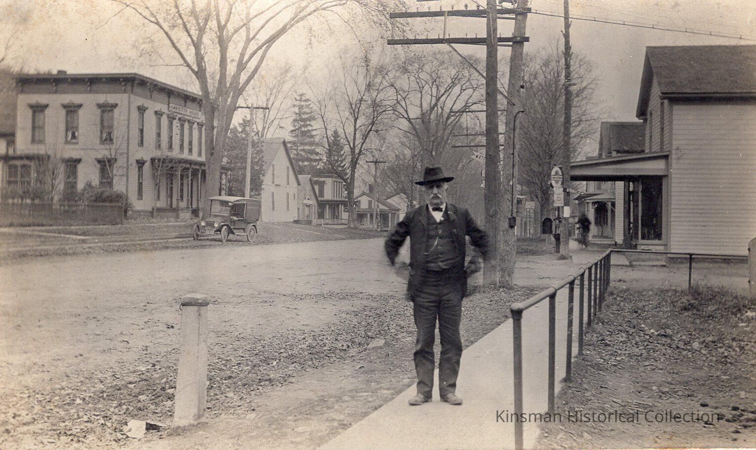 Man standing on side of road identified at "Uncle Ben Morehouse".Cataloged By