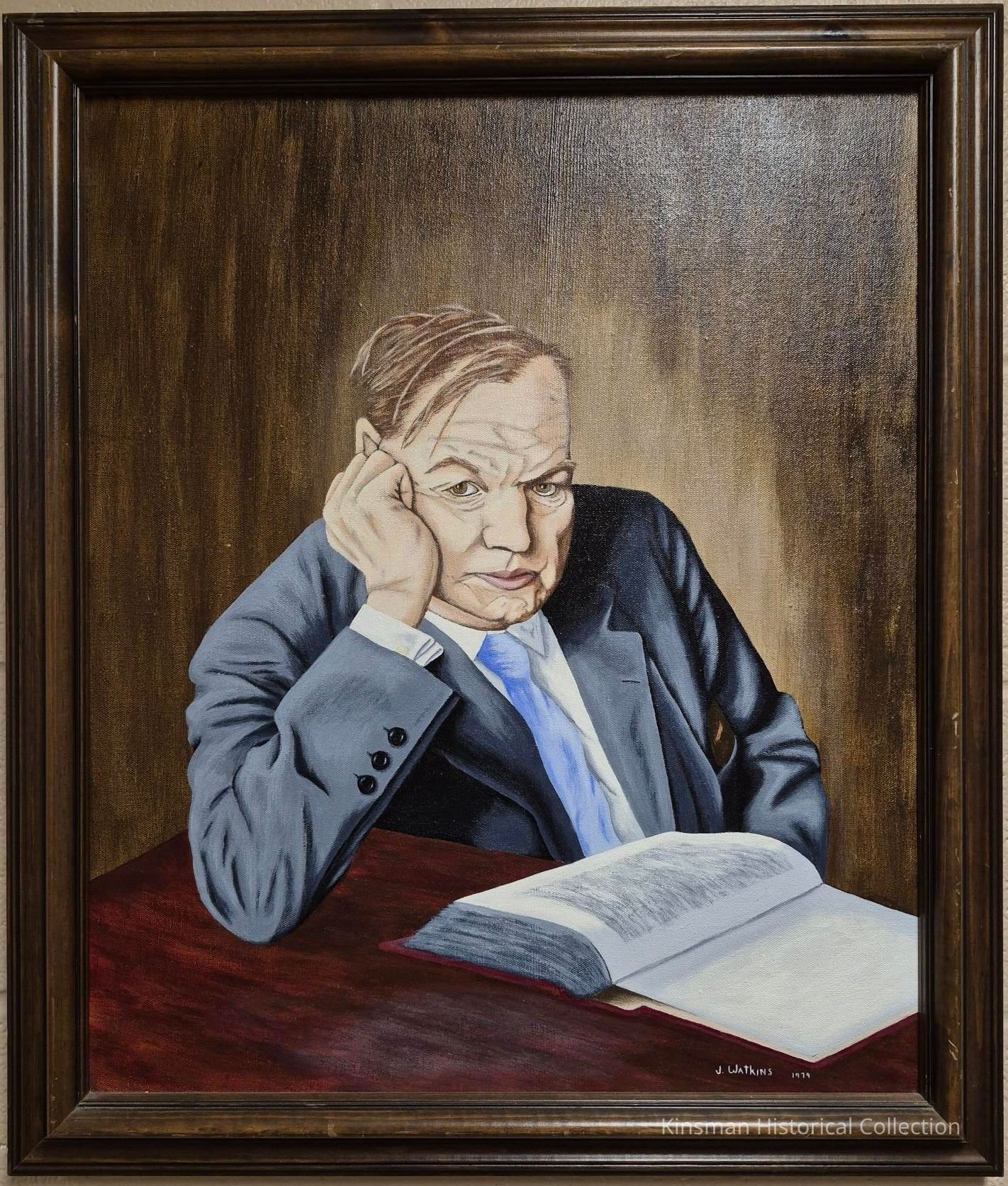 Portrait of Clarence Darrow leaning near book by Jean Watkins (1979).Cataloged By