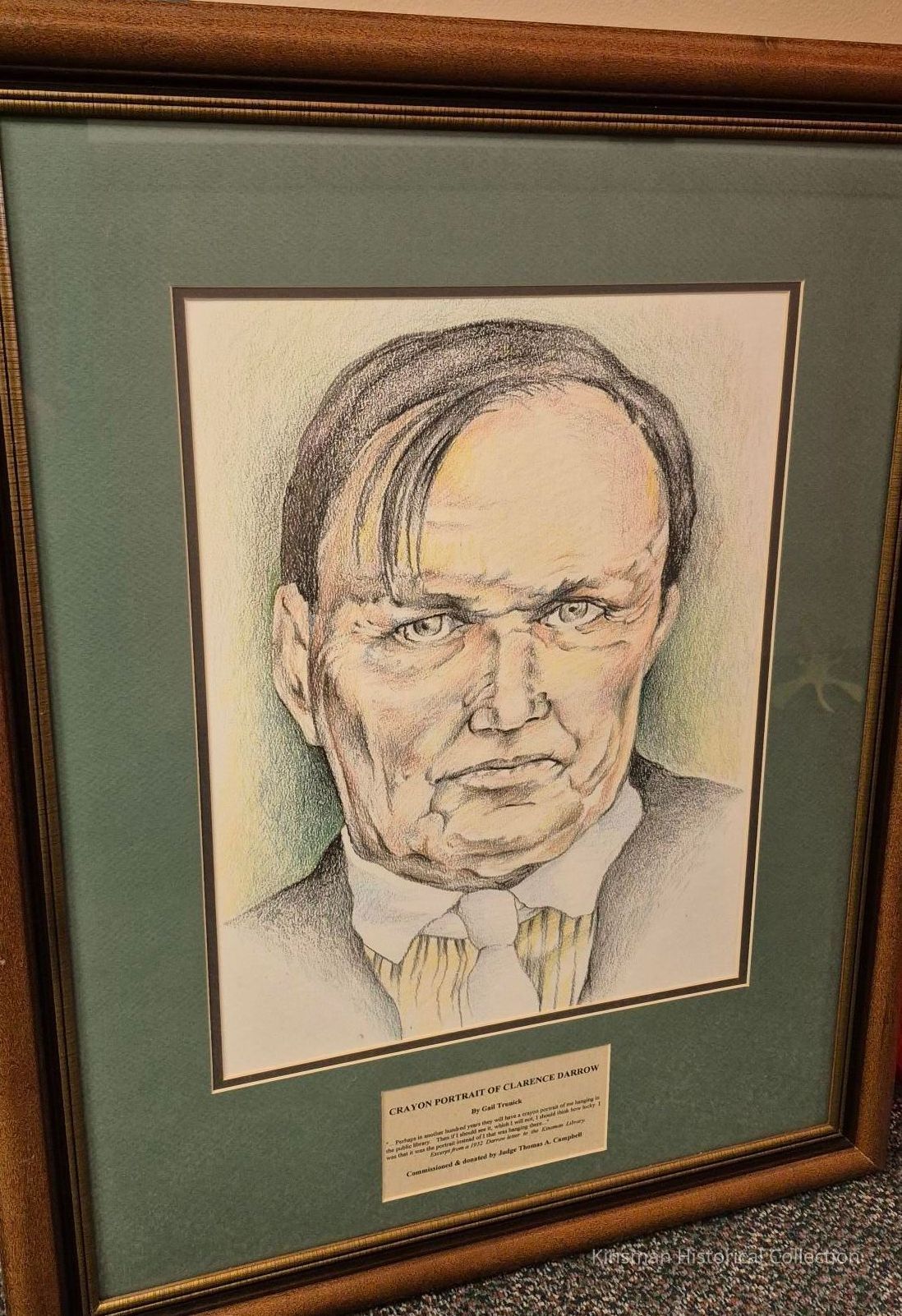Crayon portrait of Clarence Darrow by Gail Trunick. "...Perhaps in another hundred years they will have a crayon portrait of me hanging in the public library. Then if I should see it, which I will not, I should think how lucky I was that it was the portrait instead of I that was hanging there.." Excerpt from a 1932 Darrow letter to the Kinsman Library. Commissioned & donated by Judge Thomas A. Campbell.Cataloged By