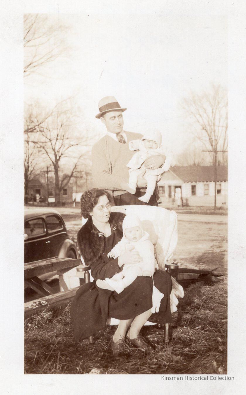 Couple holding babies, writing on back identifies as "Manson Brooks & wife with Billforks twins".Collection