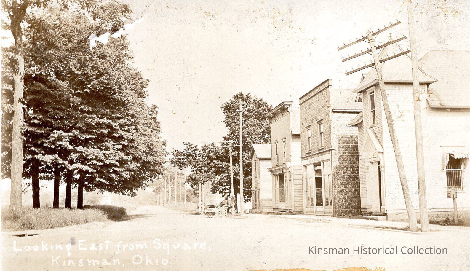Tree and building lined road looking east from the Square in Kinsman, Ohio.Collection