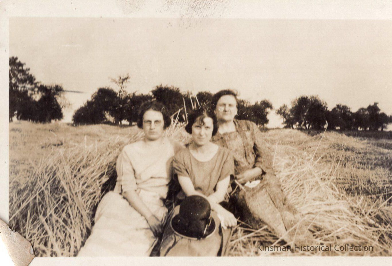 Three women sitting in a hay field.Collection
