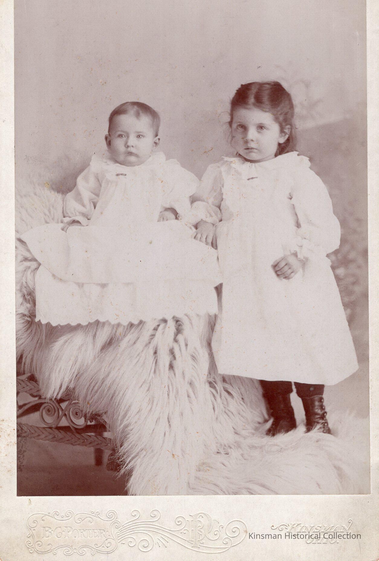 Portrait of Laura and Amy Bush on a fur rug.Cataloged By