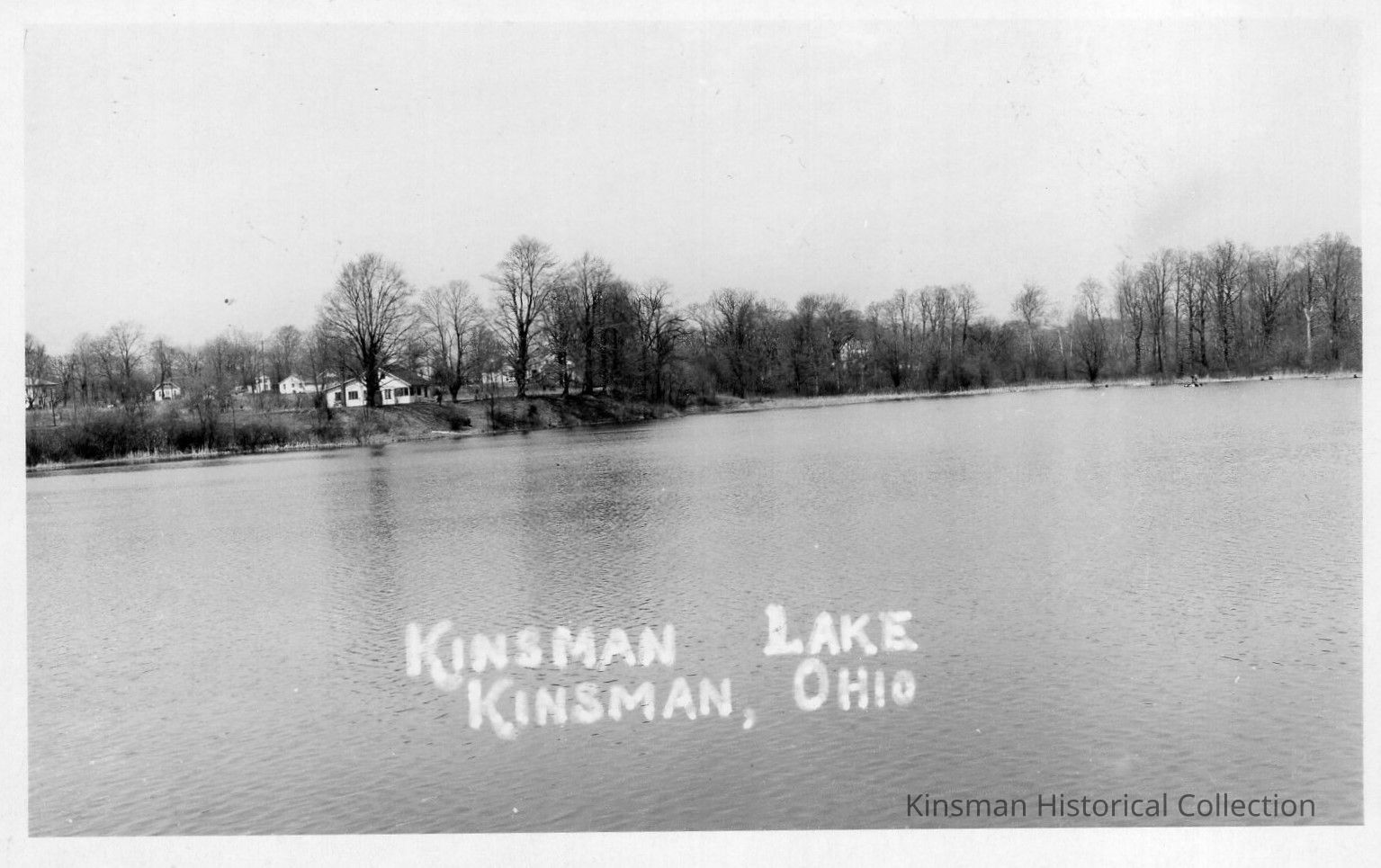 Kinsman Lake in Kinsman, Ohio with house along the shoreline.Cataloged By
