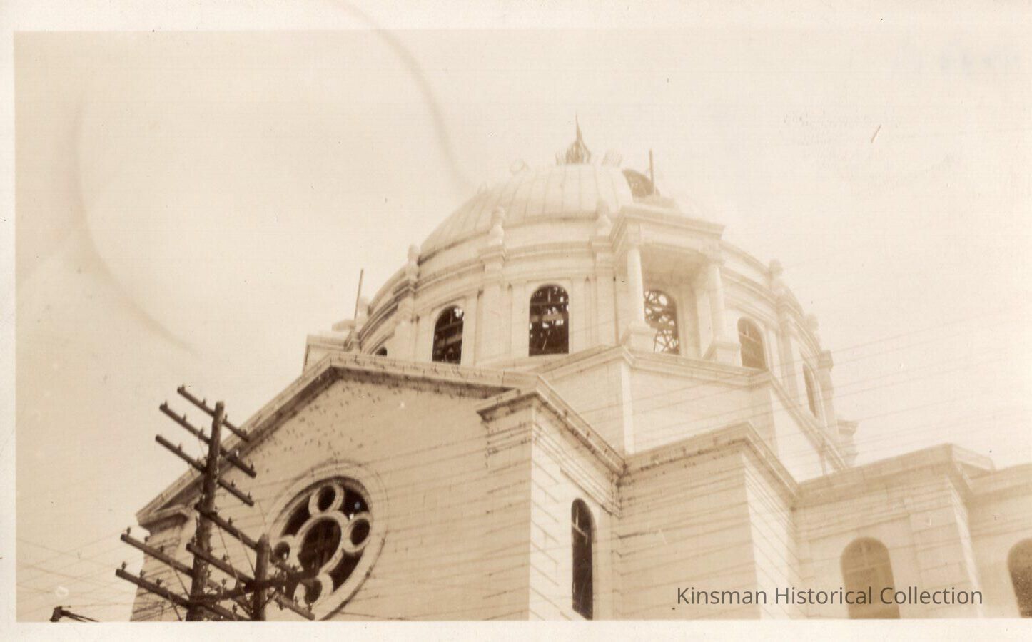Domed building with powerlines.Collection